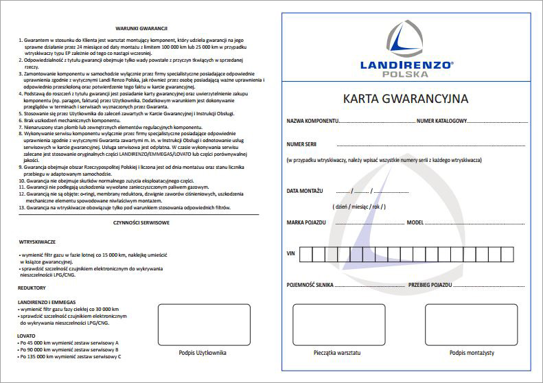 Kartę przy sprzedaży/montażu części wypełnia warsztat. Karta musi być podpisana przez montażystę i klienta. Aby reklamacja na część została uznana muszą być wykonane przeglądy zgodnie z Kartą.